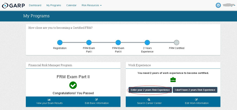 首先恭喜您通过两阶段FRM 考试,您现在只需要向GARP 协会提交两年相关工作证明即可,具体流程如下: